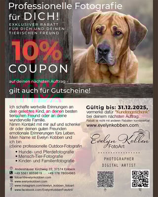 Melde dich für ein kostenfreies Telefongespräch. Für alle die vor kurzem einen Hund aus dem Tierschutz adoptiert haben gibt es einen Rabatt damit das Zusammenwachsen besser klappen kann. Zudem gibt es meine Fibel „Auf ins Leben“ gratis dazu. Hier gibt es nichts "von der Stange" sondern ich stelle mich individuell auf dich und deinen Hund ein. Natürlich ausschließlich auf freundlichem Wege!