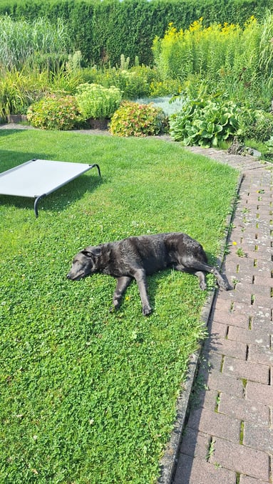 Mit der Zeit wurde sie mutiger. Bald zeigte sie mir sogar freudig: „Frauchen, da ist wieder eine Biene!“ – und danach feierten wir zusammen mit einem Fest an Leckerlis. Heute, diesen Sommer, liegt Jessie entspannt im Garten. Sie schläft sogar draußen, während um sie herum alles summt und brummt. Nur bei Wespen bleibt sie vorsichtig – was auch gut ist. Aber die Panik ist verschwunden.