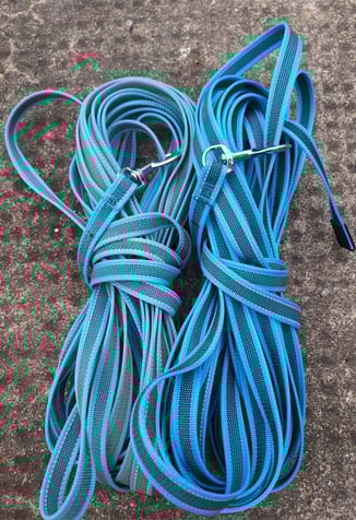 2 gummierte Schleppleinen blau ca. 14m